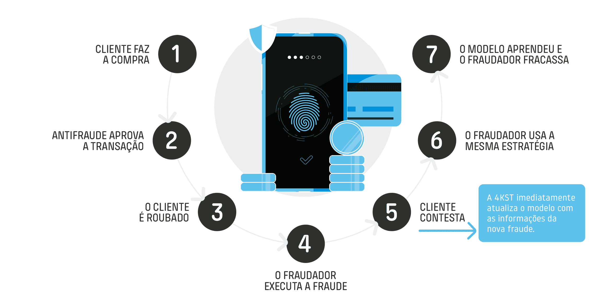 Os modelos Antifraude Adaptativos 4kst são incrementais e adaptativos — não ficam limitados aos dados do passado. Eles se atualizam em tempo real, identificando novas fraudes à medida que surgem. Mesmo que o fraudador mude de estratégia, o modelos Antifraude Adaptativo 4kst está preparado para identificá-lo.